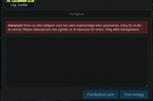 Brukere som har en stor andel unødvendige eller upassende svar på forum får nå en advarsel som minner de på dette når de skal poste nye nytt. Etter hvert som andelen går ned under en bestemt verdi vil varselet forsvinne igjen.